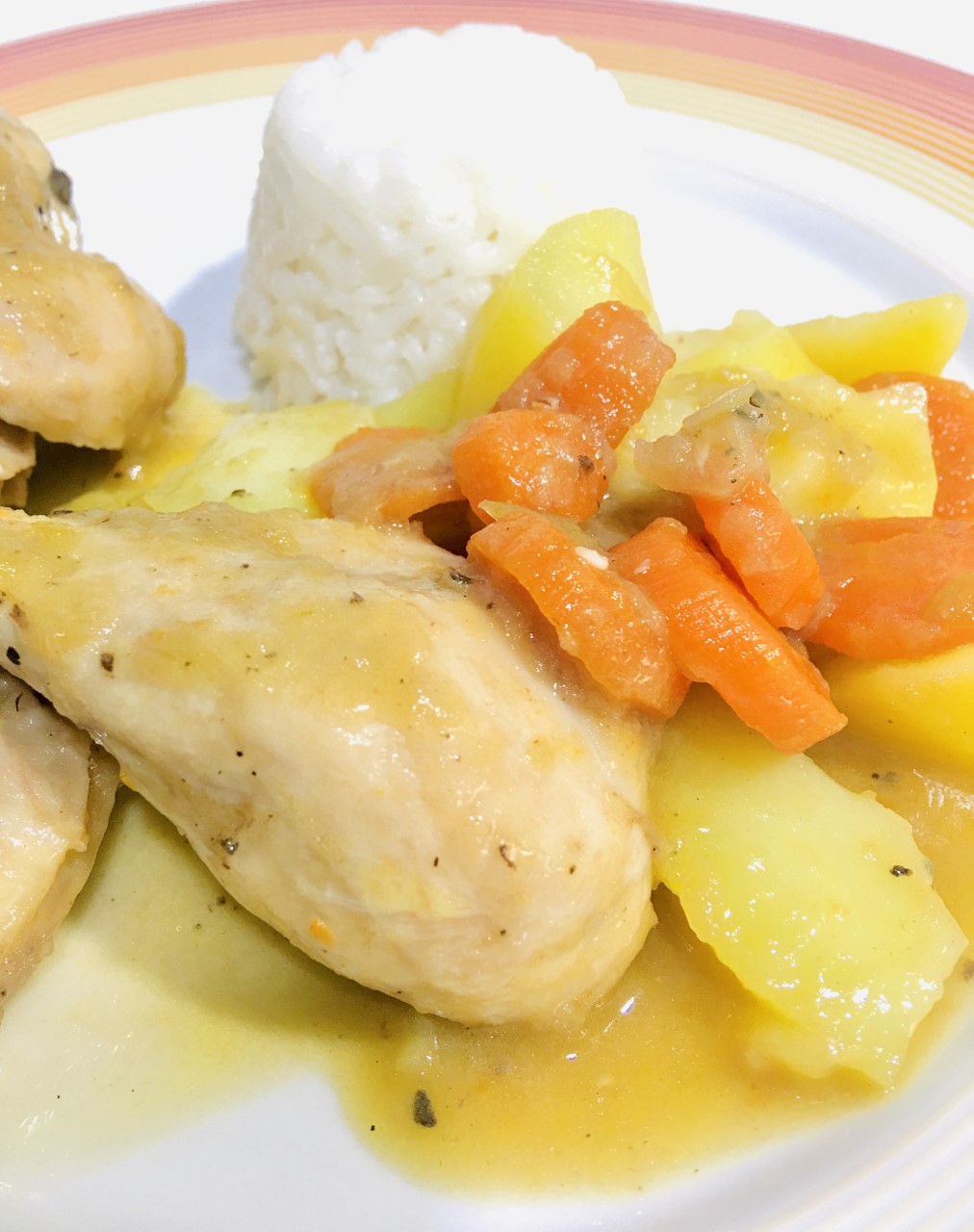 Menú: Jamoncitos y verduras, a la cerveza, con vasitos de arroz