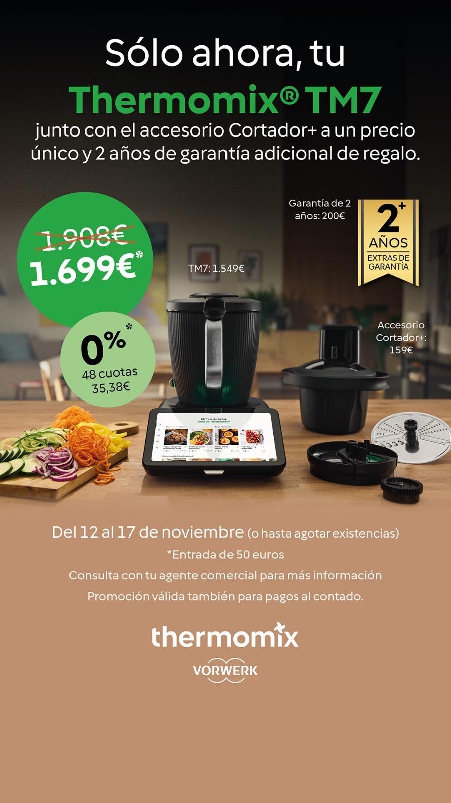 Sólo ahora, tu Thermomix TM7 junto con el accesorio Cortador+ a un precio único y 2 años de GARANTÁA ADICIONAL DE REGALO.