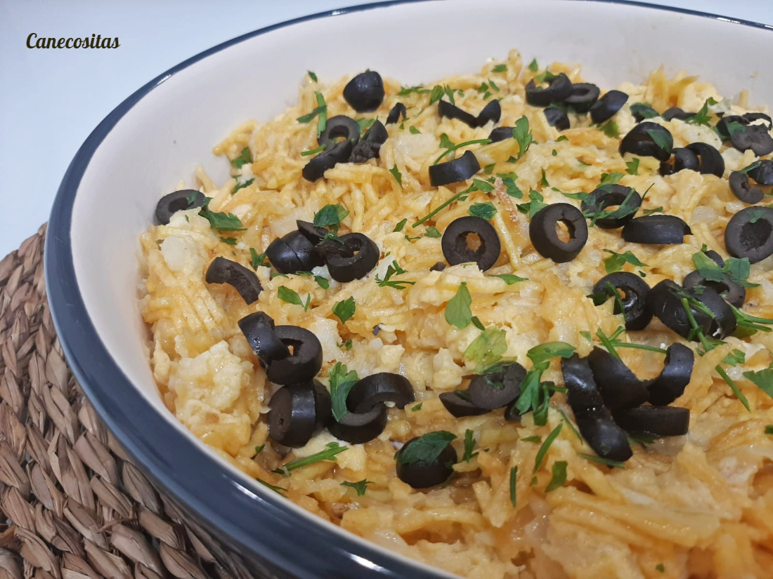 Queda genial!! es como un revuelto de huevos, patata, cebolla y bacalao.