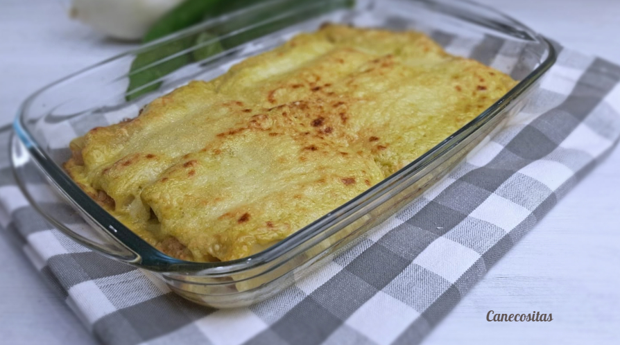 CANELONES DE ATUN FRESCO CON BESAMEL DE CALABACIN