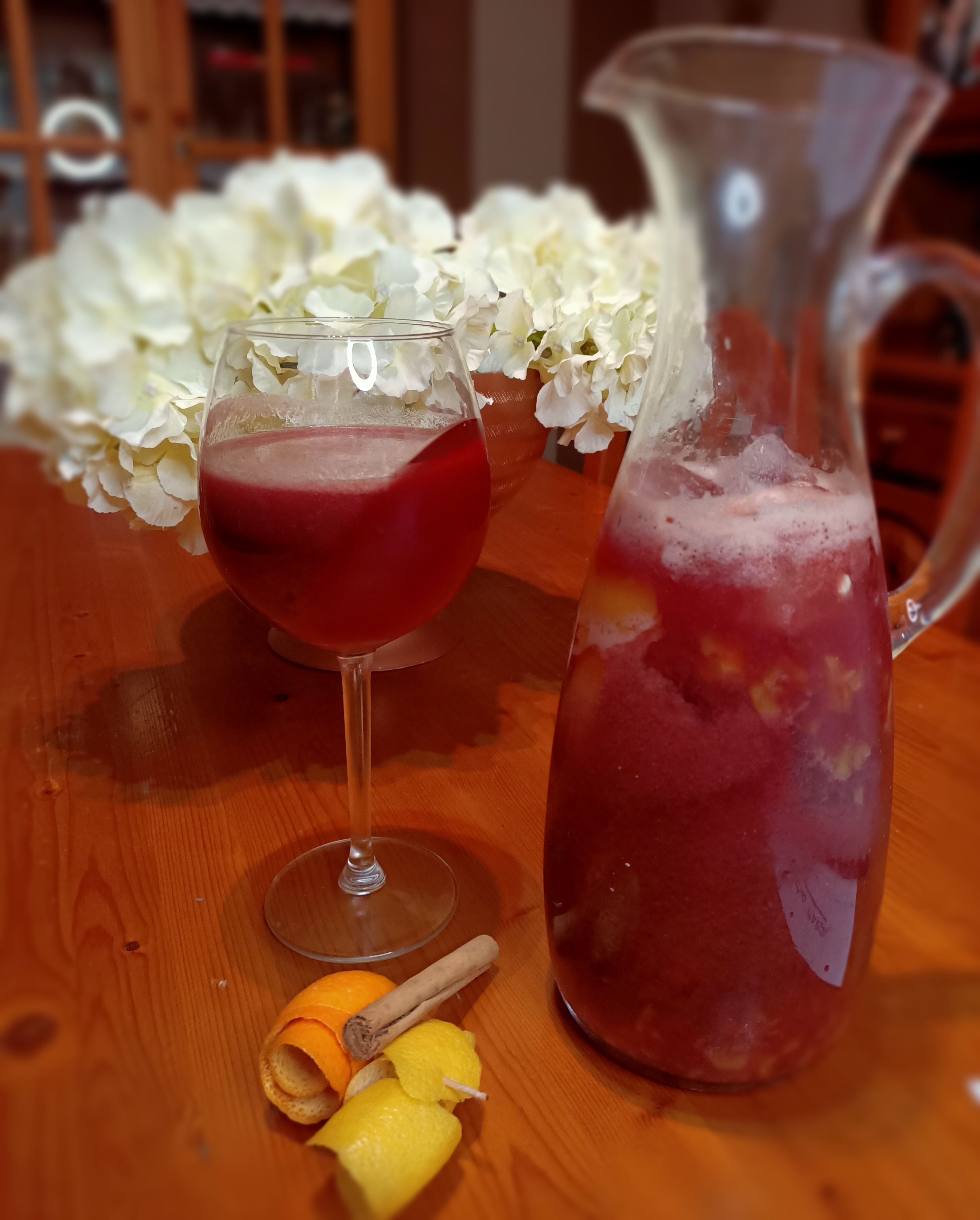Añada el vino, el vermut, el brandy, la ginebra, y la gaseosa y mezcle 1 min/vel 2.