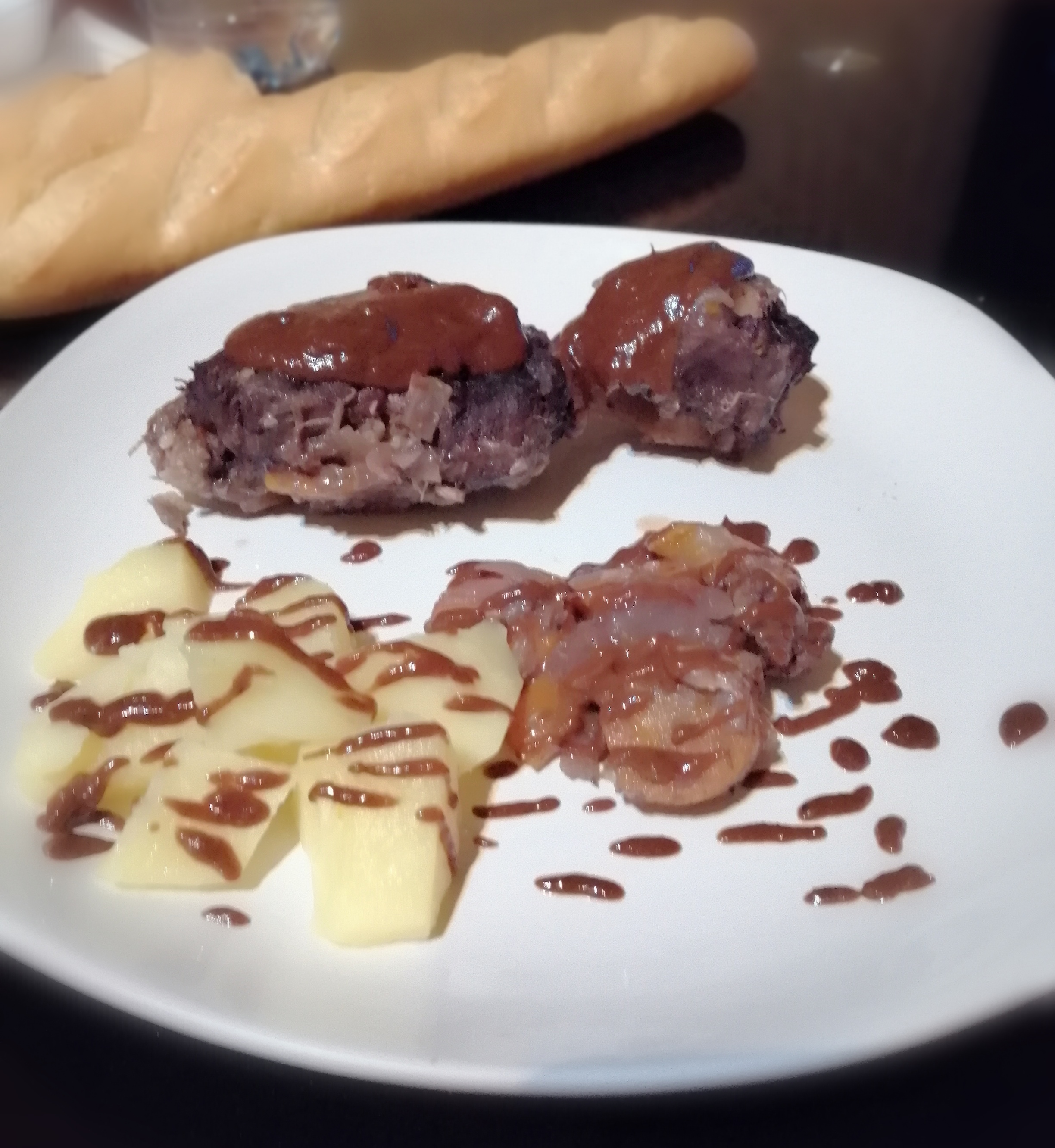 Hace tiempo que quería probar esta receta así que aquí esta. Aquí puse las patatas como guarnición .Hay una trampa a ver si la encuentras y me decís algo.