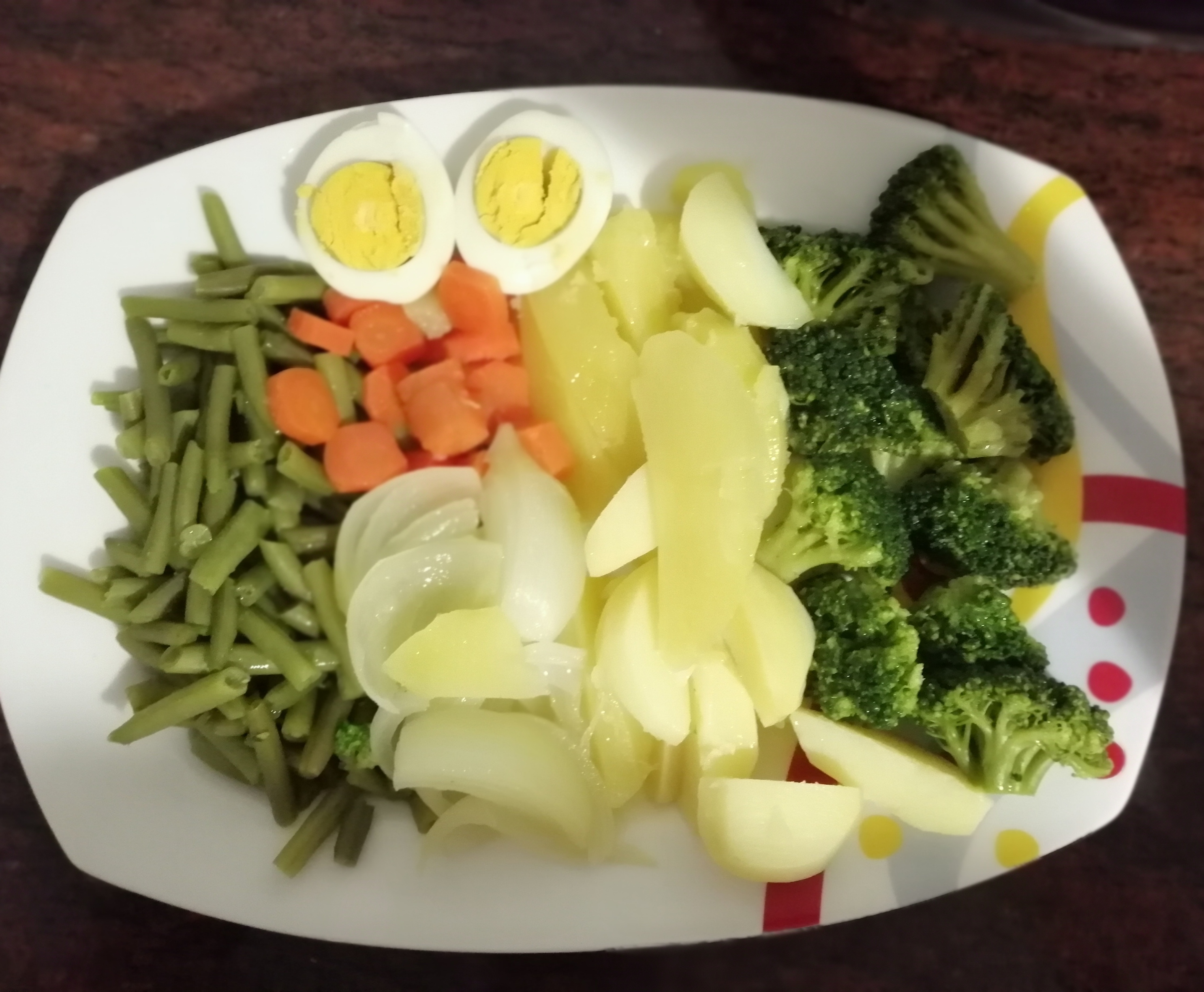En esta receta no voy a poner cantidades porque no es necesario es simplemente poner lo que os apetece. Si sobra al día siguiente lo que yo hago es ponerle atún y mahonesa y tengo una rica ensaladilla.