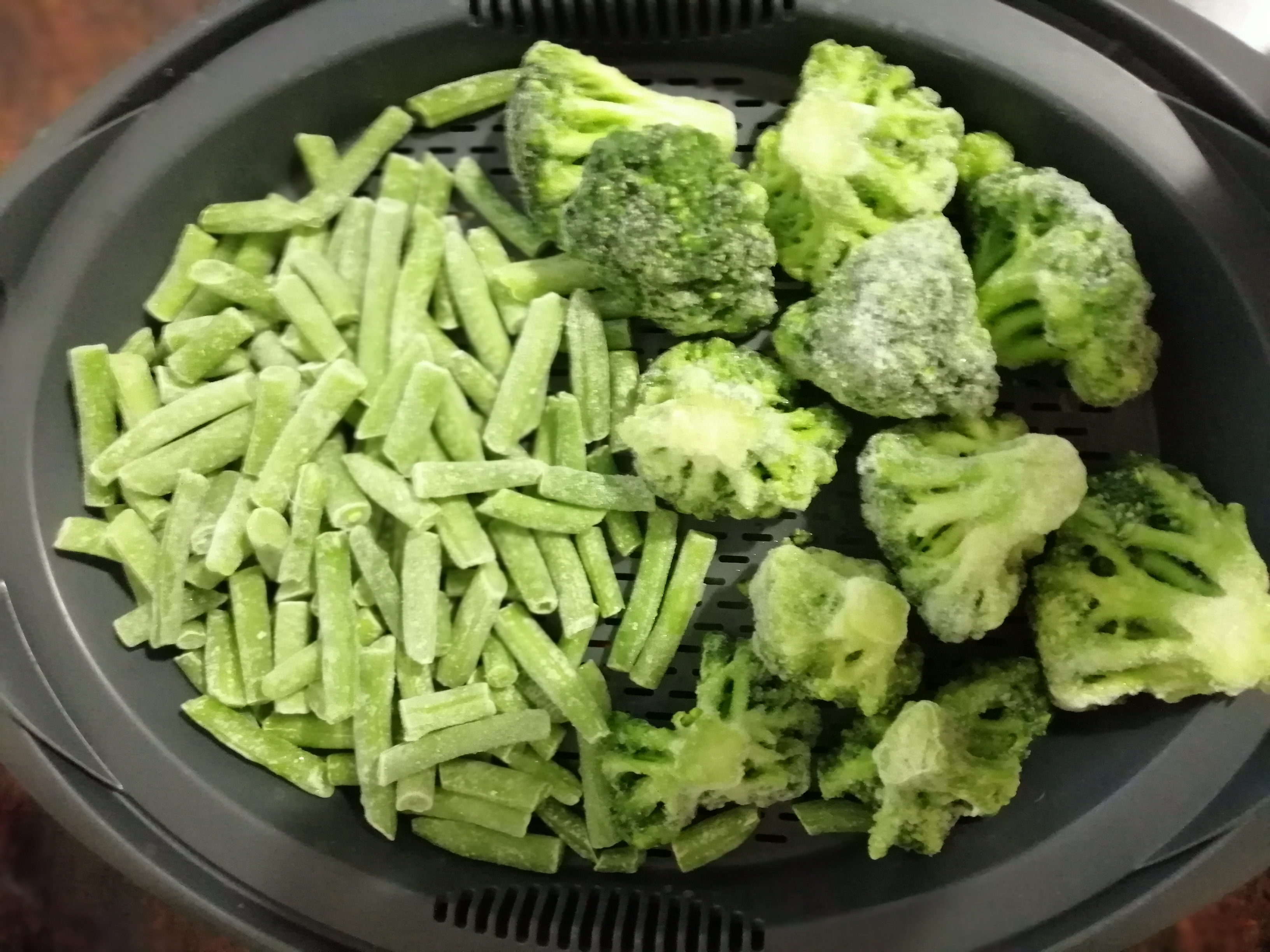 Esta vez no era verdura fresca (por falta de tiempo) pero siempre tengo en el congelador (brocoli, zanahoria y judias verdes. Mirar que bueno el resultado final.