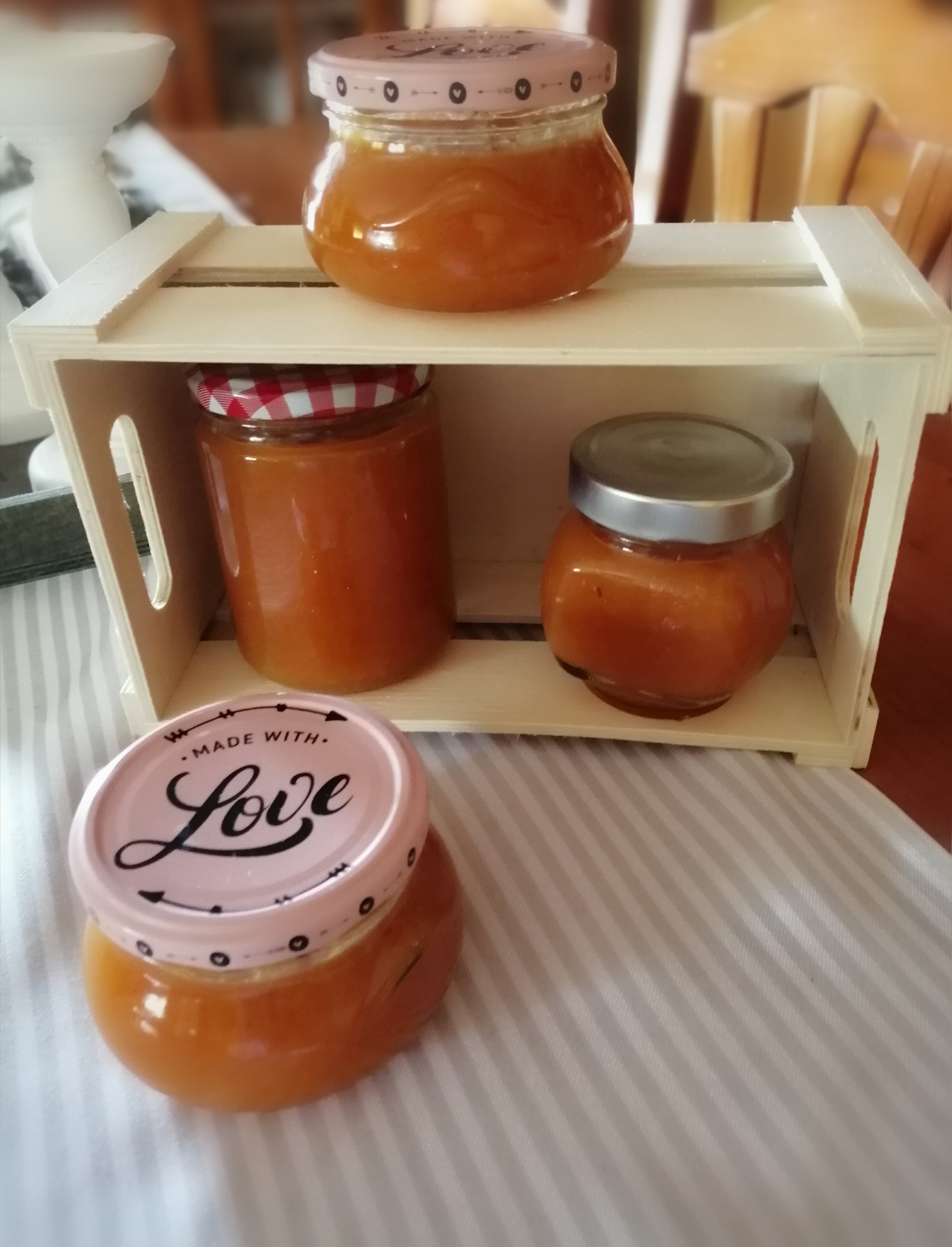 Me quedo a mi gusto , pero aquí depende del grado de madurez de la fruta si ves que queda liquida ponla 10 minutos más a la misma temperatura y velocidad. Como veis en la foto me saliendo 4 botes.