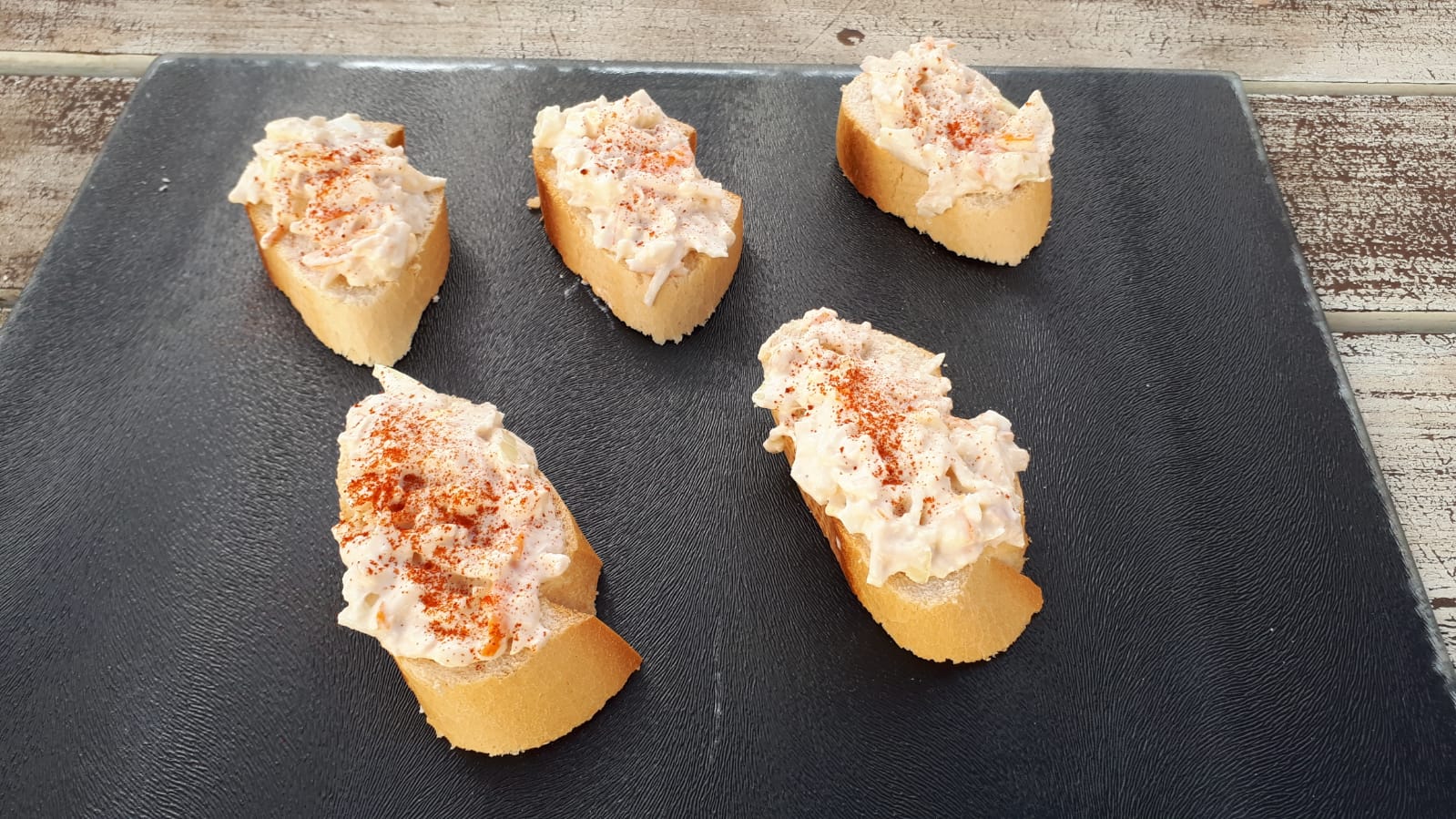 Pincho de palito de cangrejo y atún.