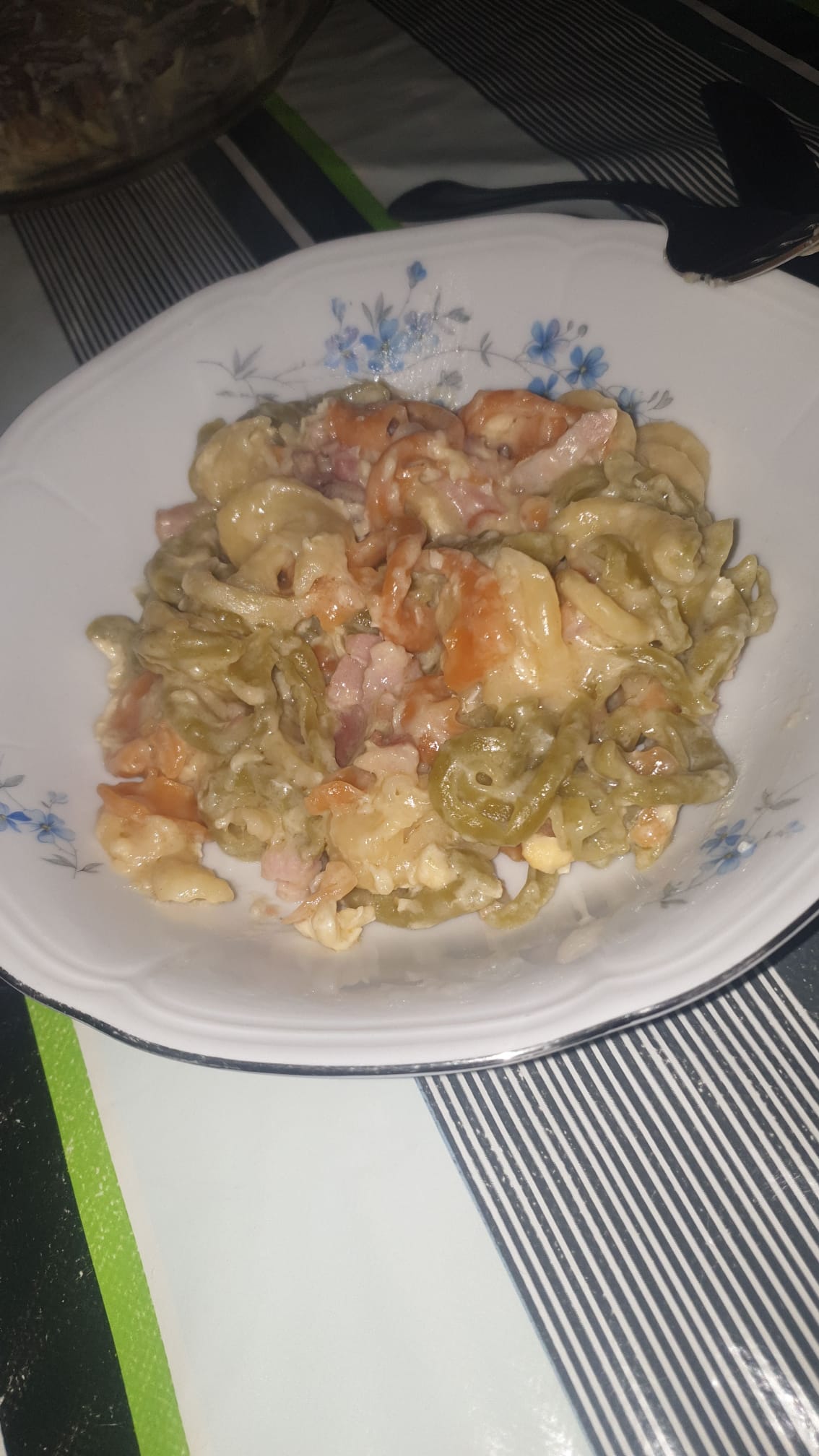 Bueno como no tenían macarrones han puesto otra clase de pasta. No hay problema . Como sabéis podemos adaptar nuestras recetas.