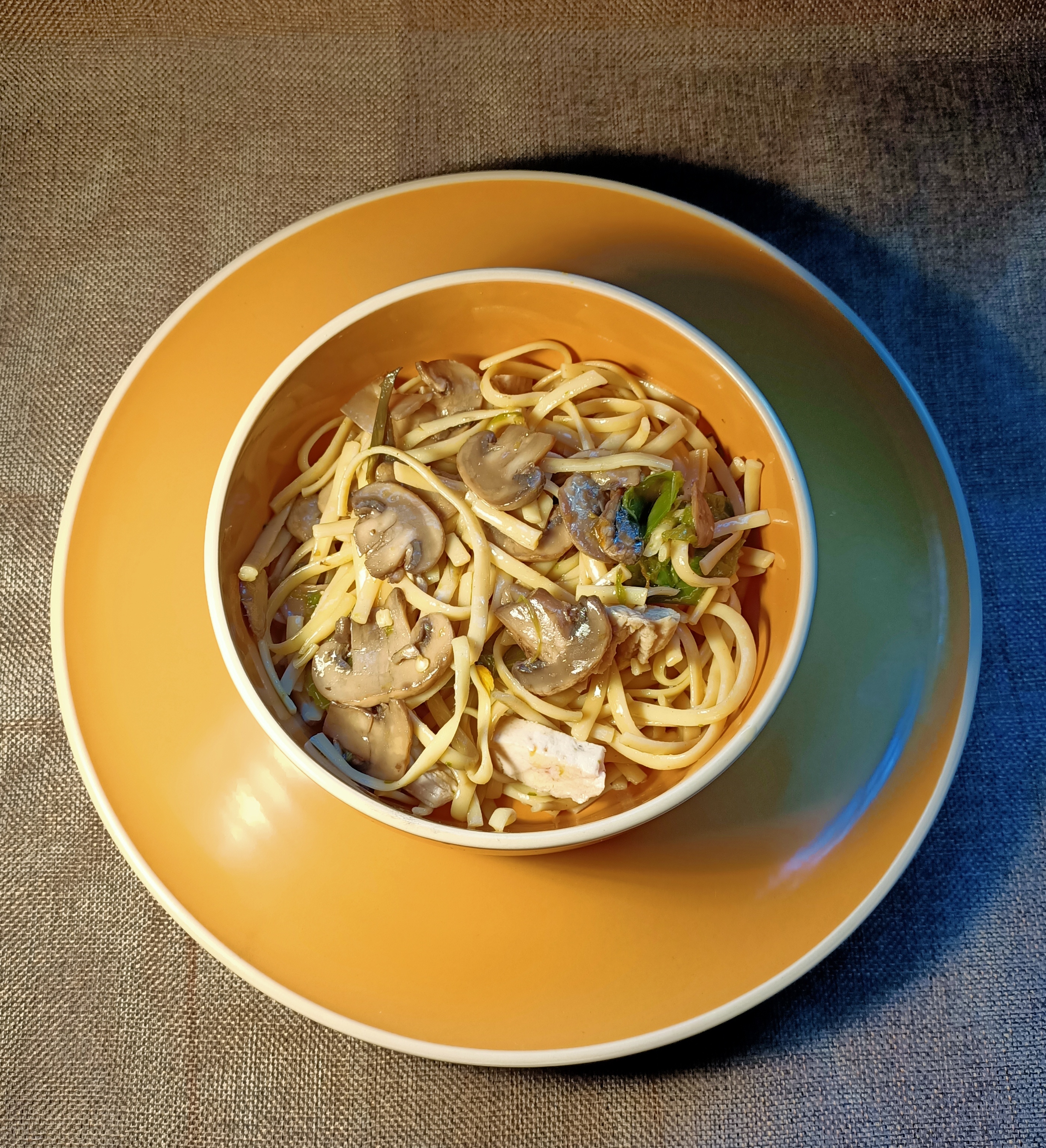 8. Añada al vaso los tallarines y rehogue 1 min 30 seg/120°C/giro inverso /vel cuchara.