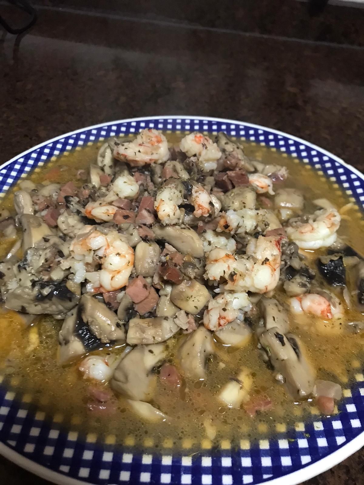 Hoy me quedo en casa !!!!! "Champiñones con jamón y gambas"