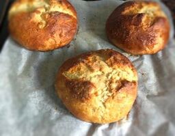 Divide la masa en tres partes y forma 3 bolas. Colocala en una bandeja de horno forrada de papel de hornear y deja reposar una hora más.