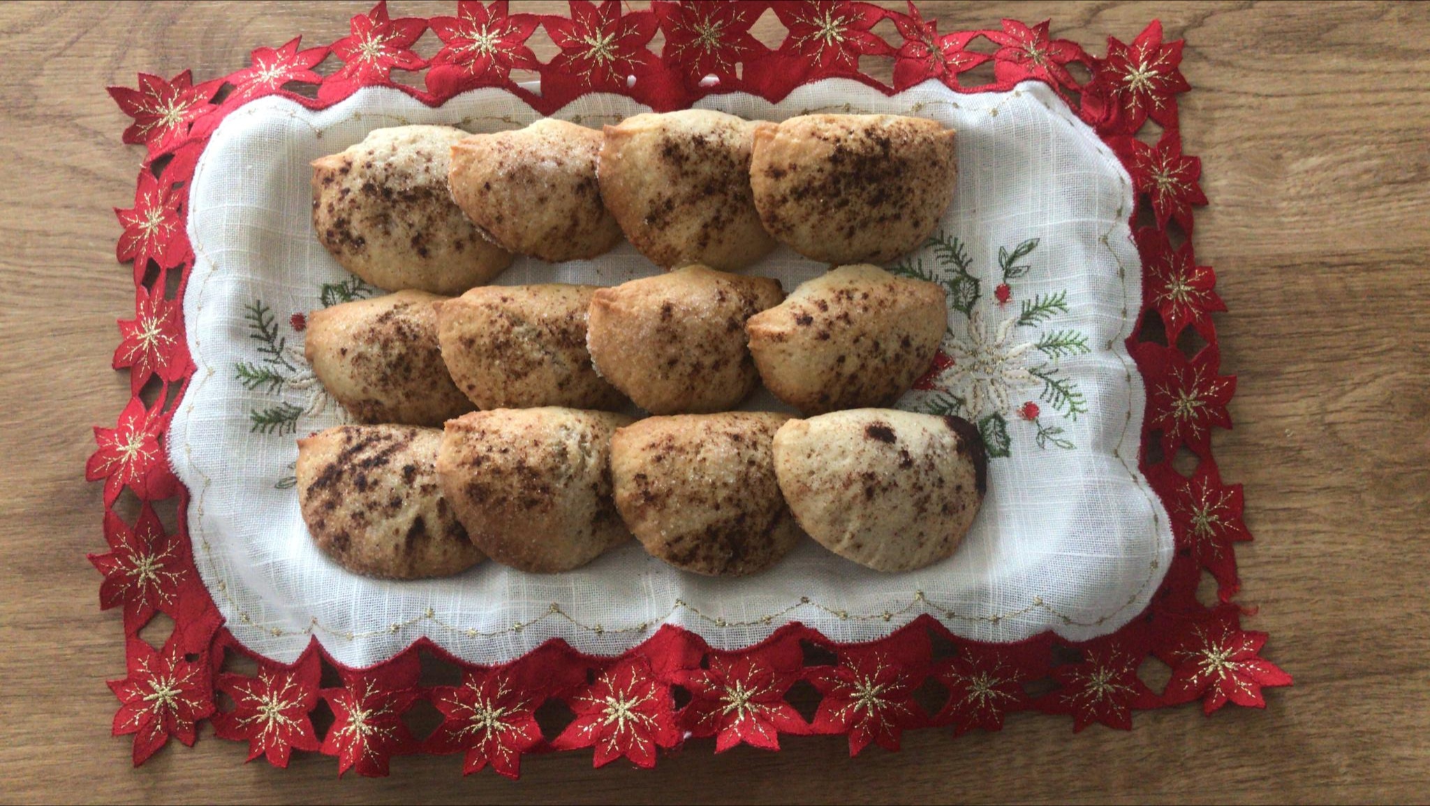 5. Dividir la masa en pequeñas porciones, formar bolitas y extenderlas, rellenar con el dulce de boniato, sellarlas y espolvorear con azúcar y canela.