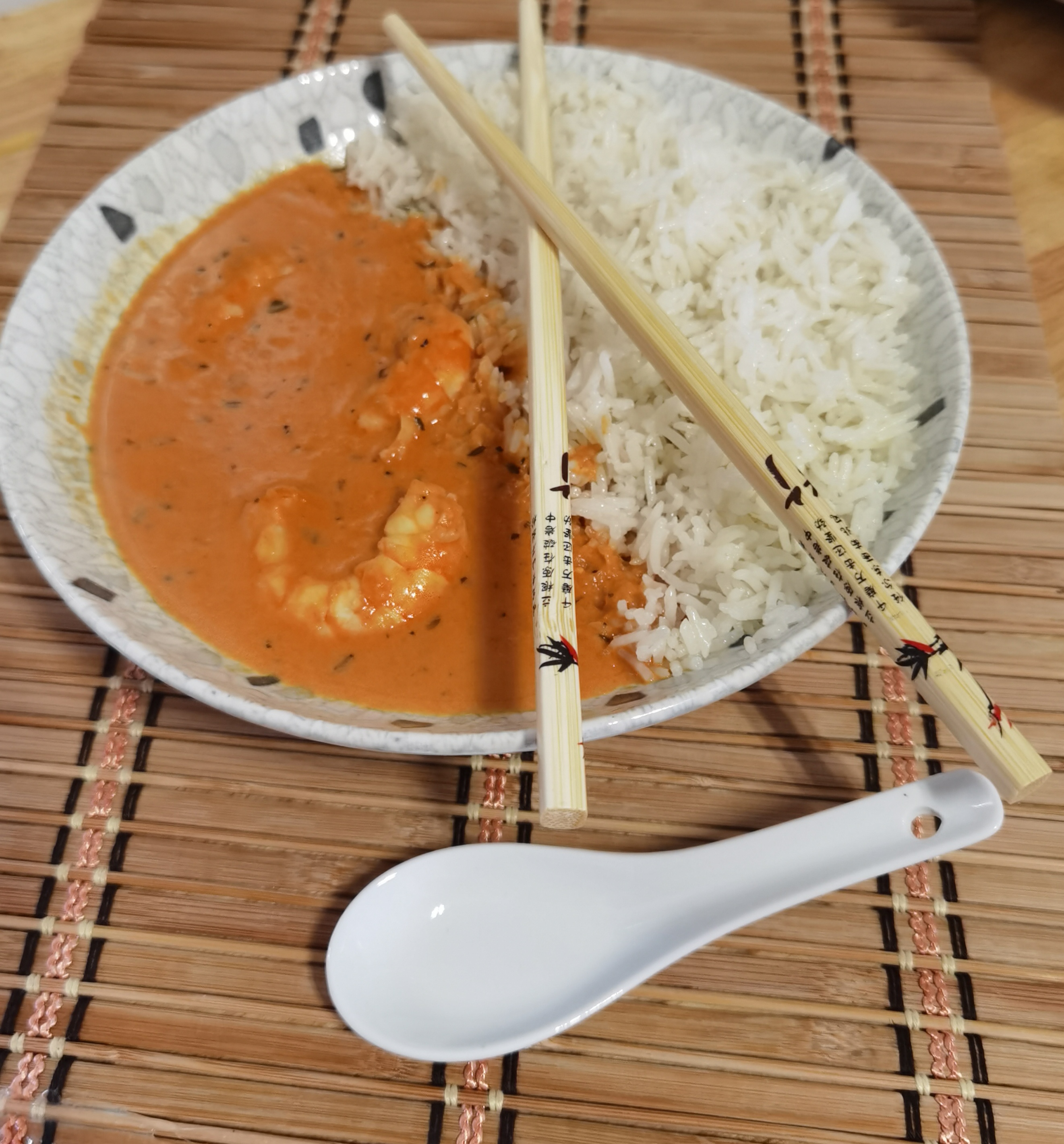 Curry de langostinos con arroz basmati