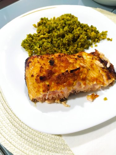 Salmón a la naranja con cuscús de brócoli