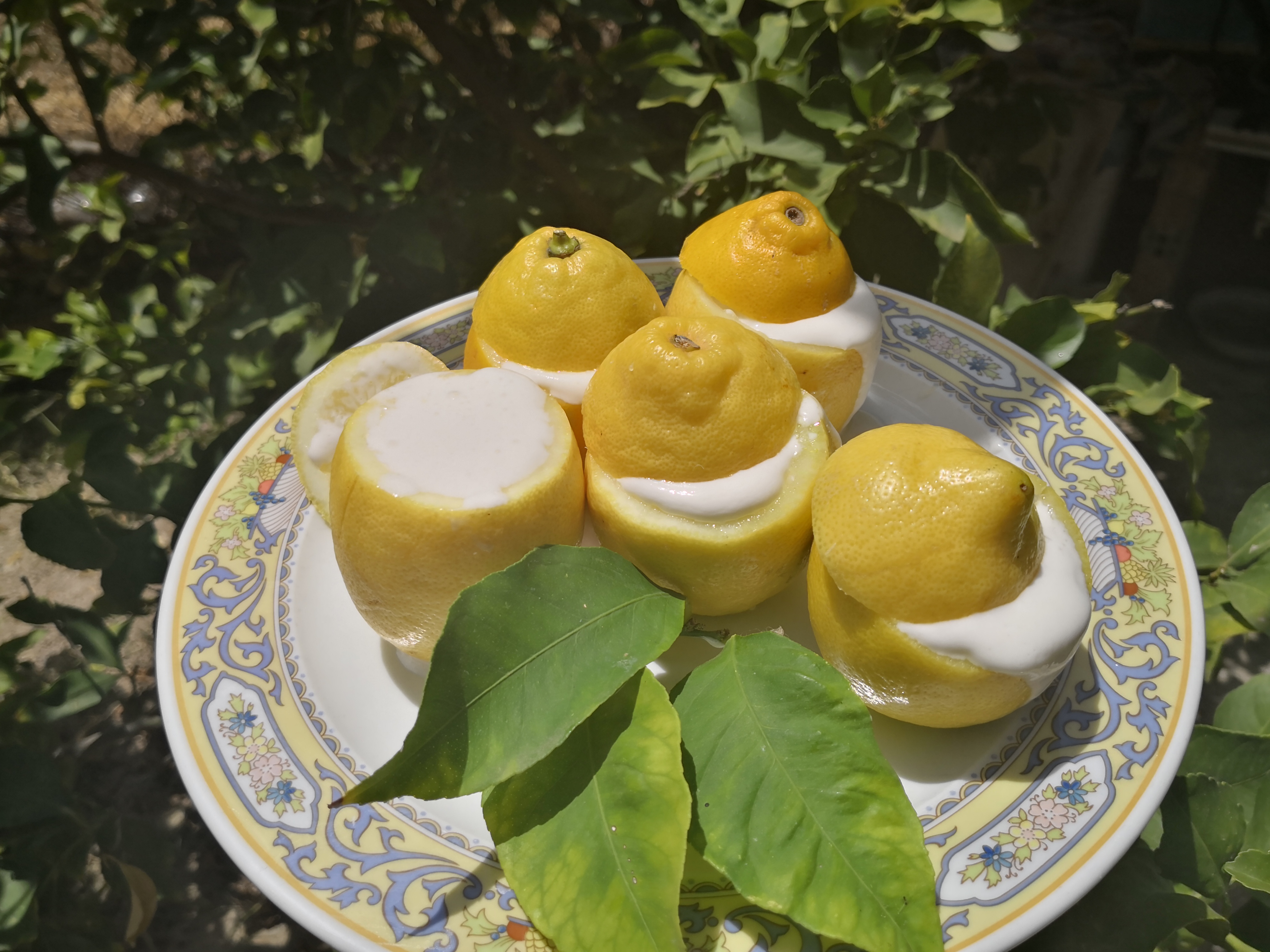 6.Ponemos la crema en los limones que previamente hemos vaciado o también se puede poner en copas para servir inmediatamente.