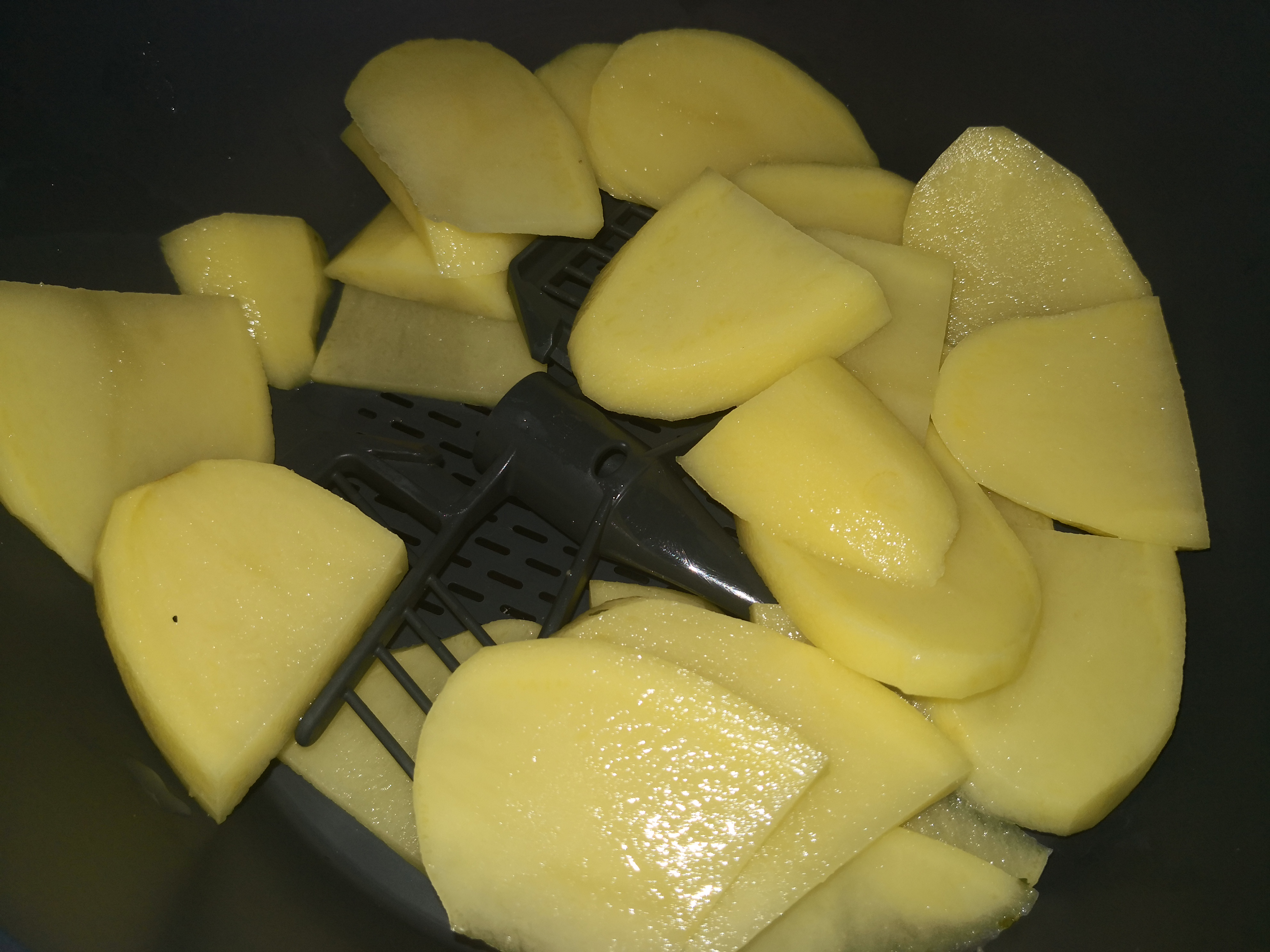 Cuando vamos a cocinar con el Varoma y queremos aumentar la cantidad, como por ejemplo las patatas, ponemos bajo las patatas la mariposa para no tapar los agujeros del Varoma y pueda pasar el vapor. Así se cocinara mejor ya que entrará el vapor sin problema.