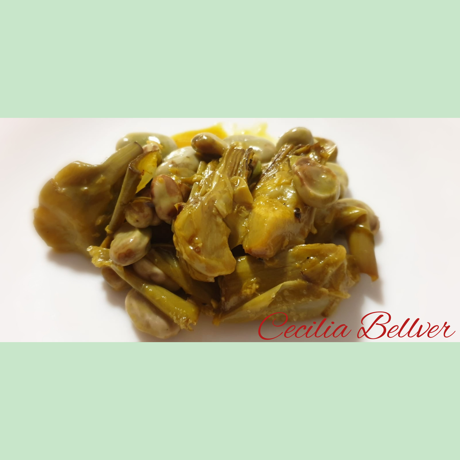 Alcachofas con habitas al azafrán