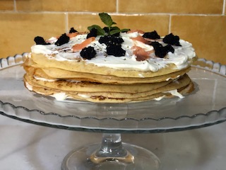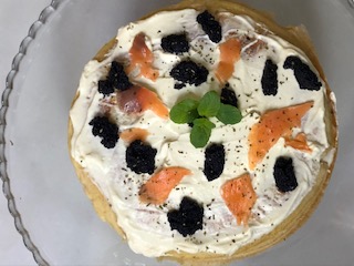 Pastel de crepes con salmón marinado