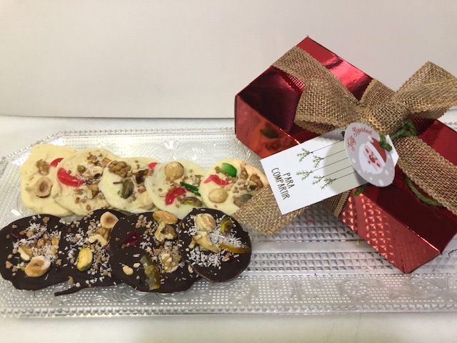 Es conveniente realizar pocas unidades a la vez para que el chocolate esté fluido y los frutos secos, etc. queden adheridos antes de que se endurezca.
