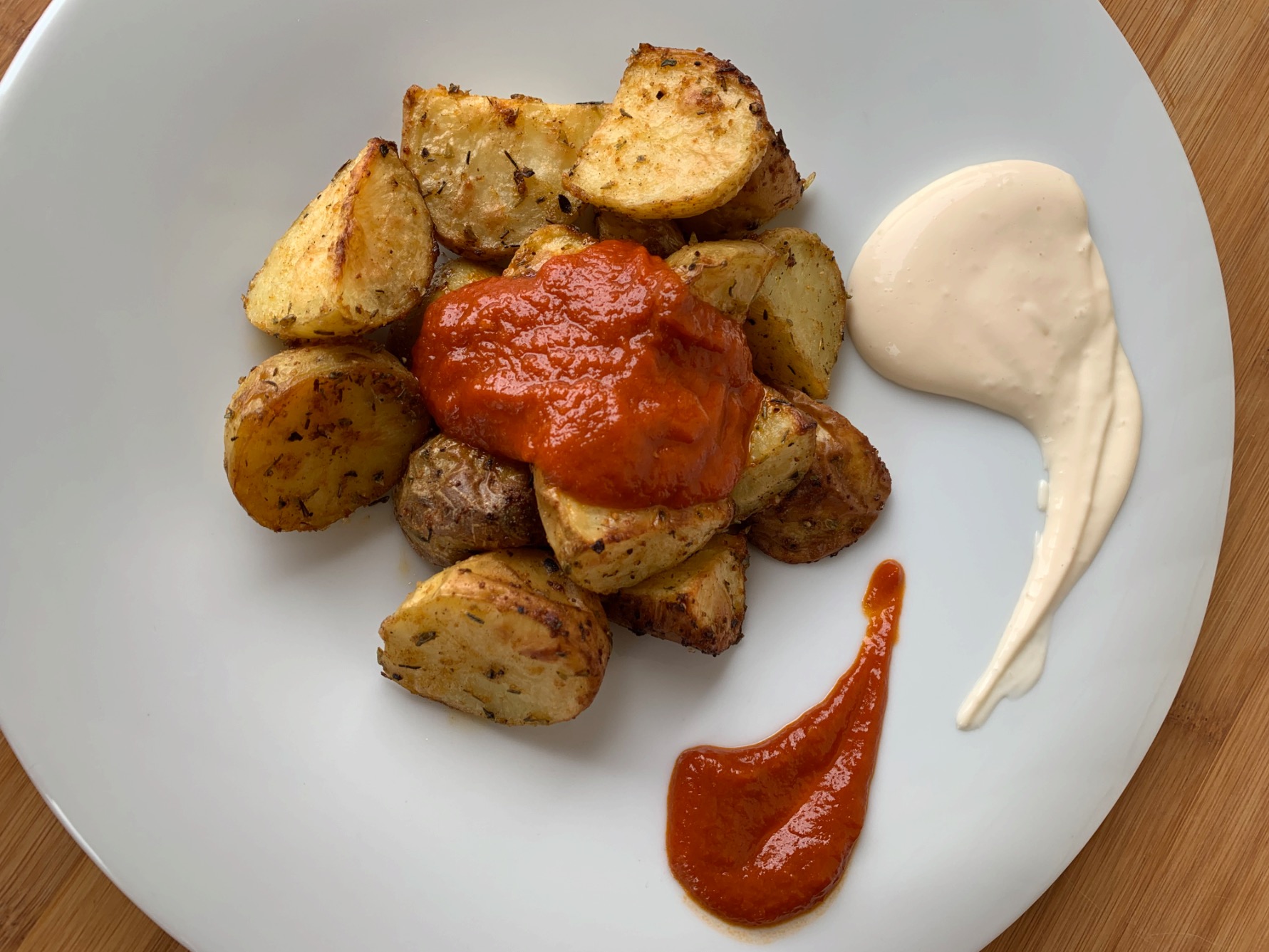 Hoy os traigo una receta clasica para picotear , las patatas bravas con su salsa de tomate picante .