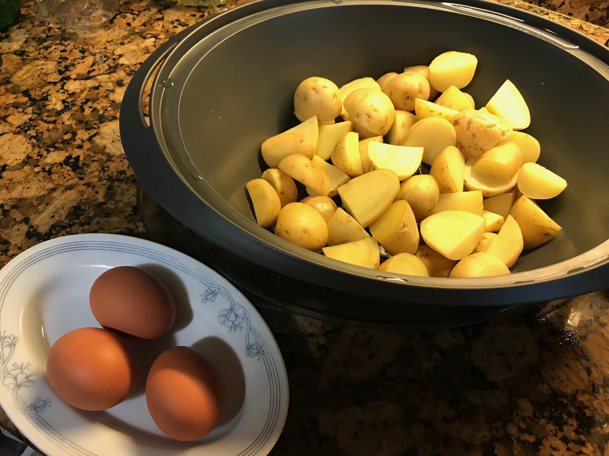 Yo en el varoma ponga la mariposa y encima las patatas , así deja pasar bien el vapor .