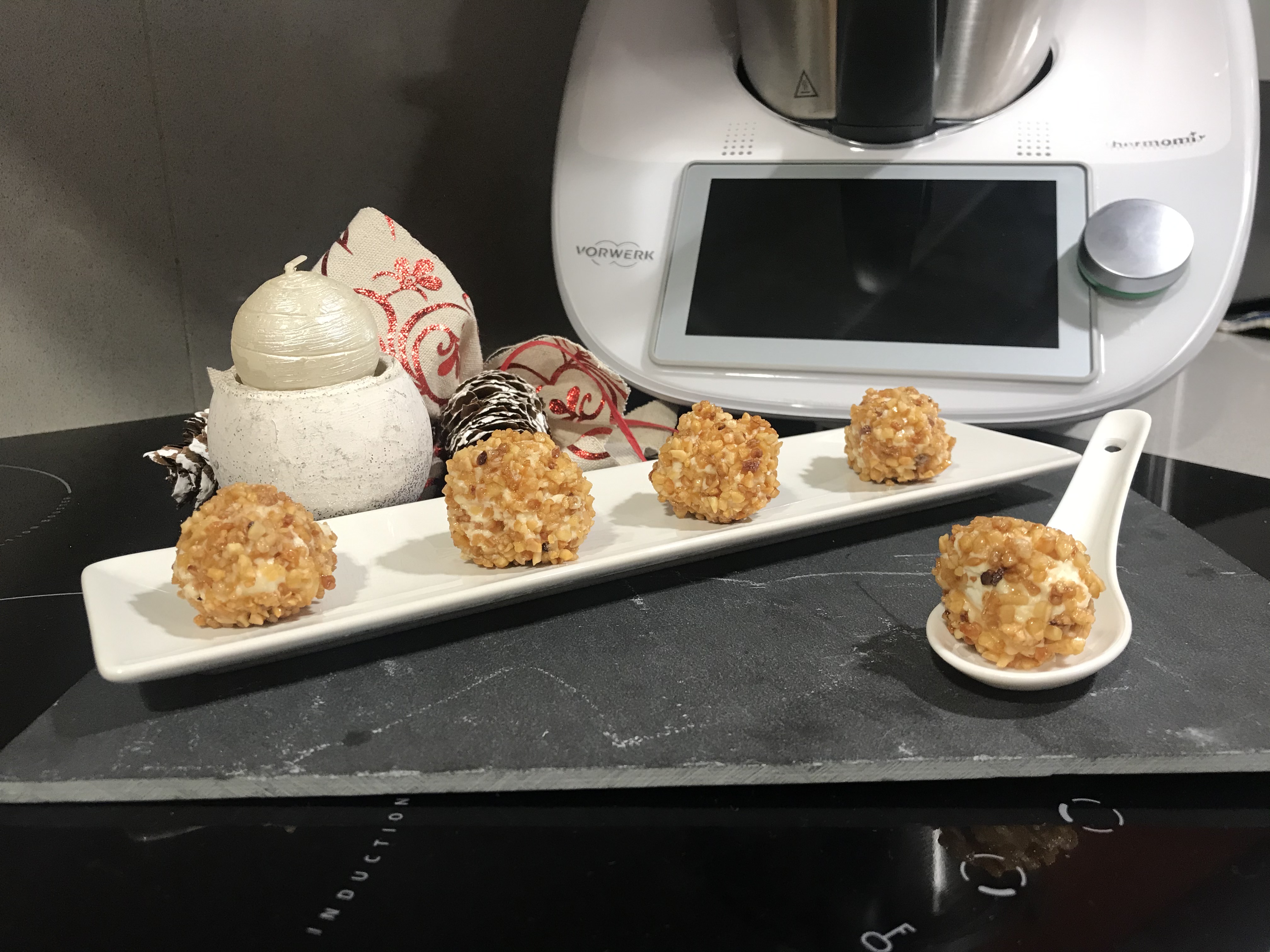 BOMBON DE QUESO CON CRUJIENTE DE ALMENDRA TOSTADA