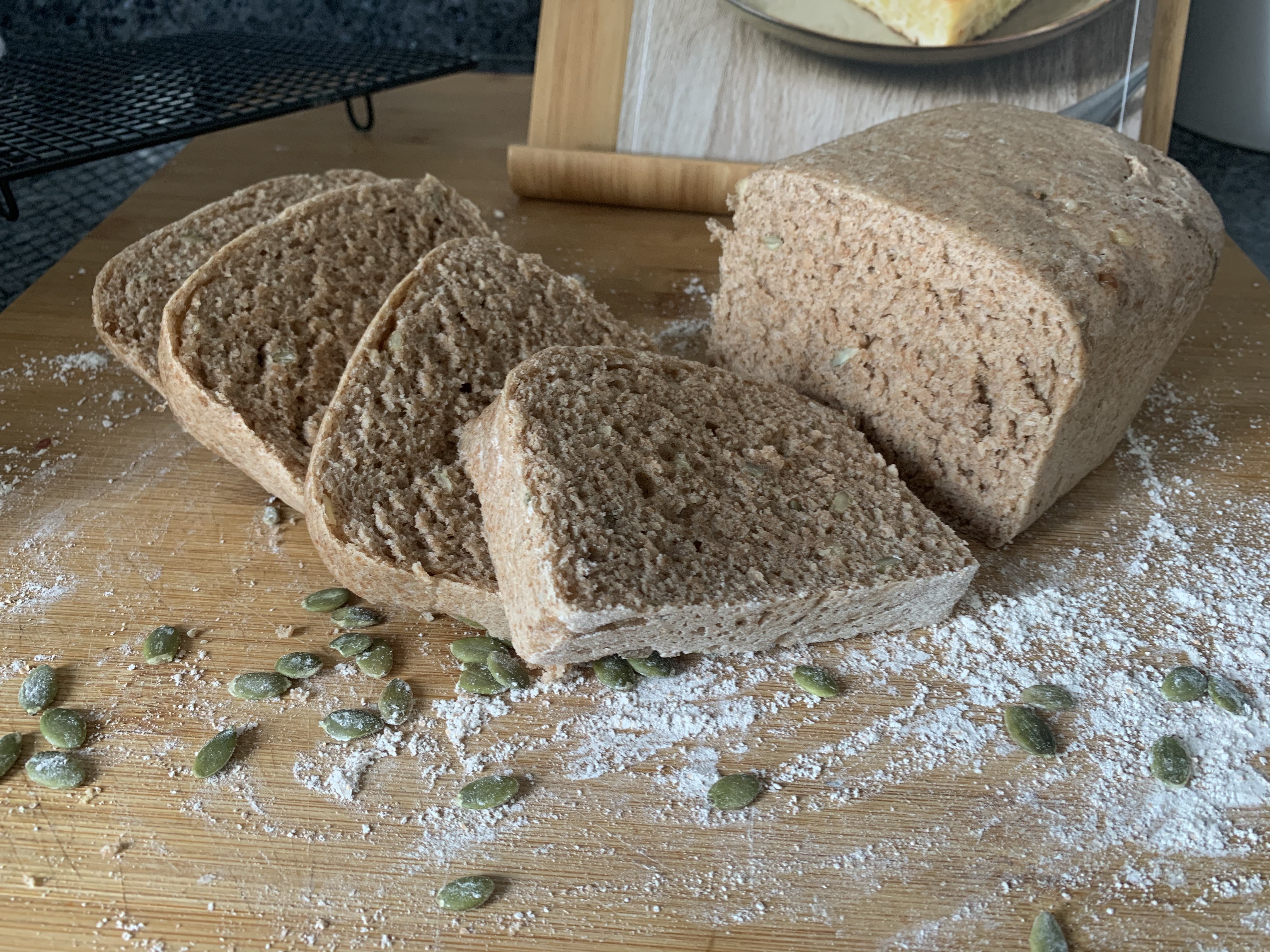 PAN DE ESPELTA CON NUECES Y PIPAS DE CALABAZA AL VAPOR.