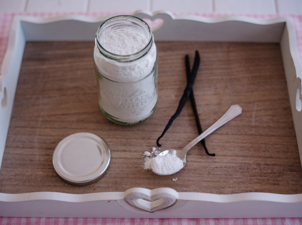 Guardamos el azúcar resultante en un tarro con cierre hermético con el fin de que no se pierdan los aromas de la vainilla.