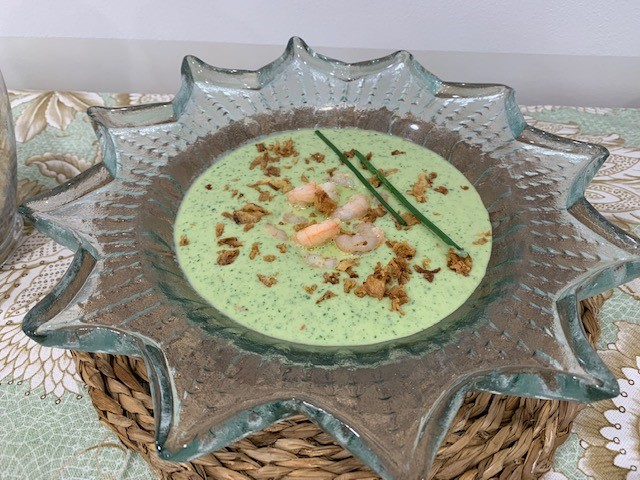 SOPA FRIA DE AGUACATE CON GAMBAS