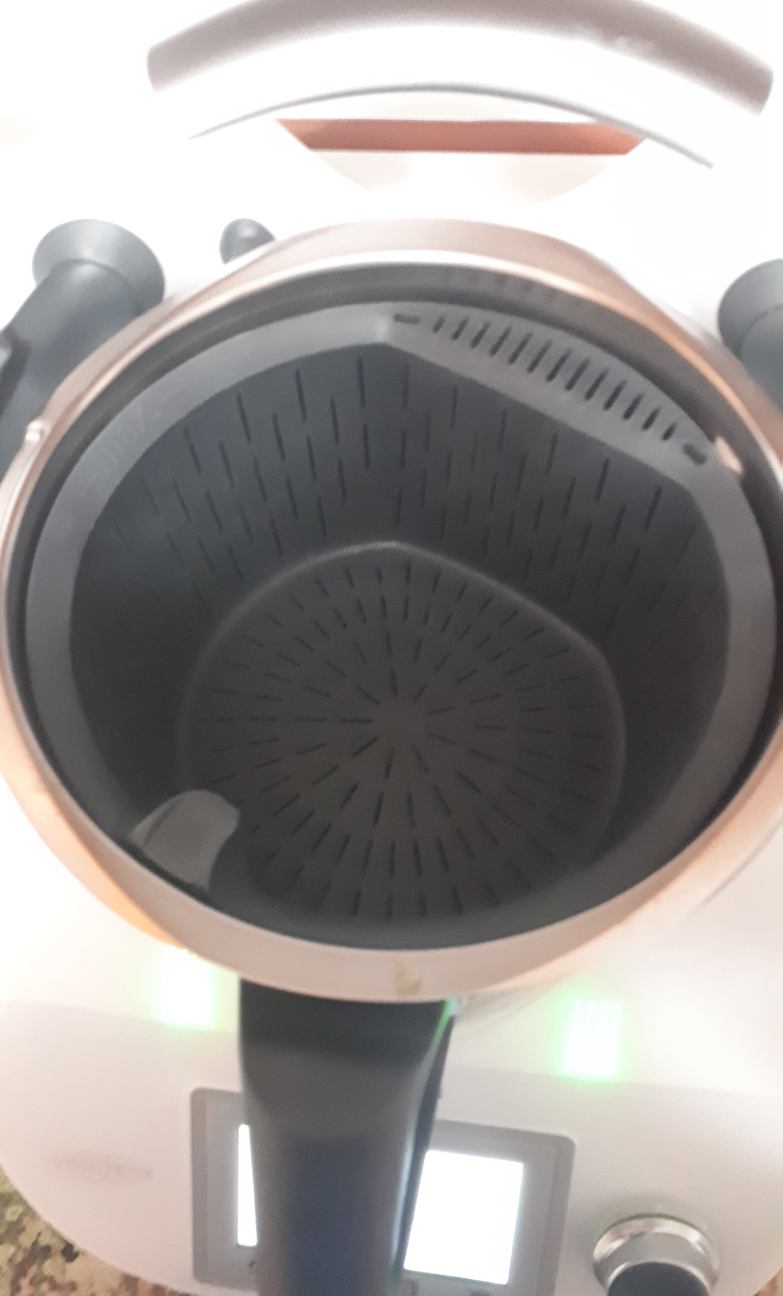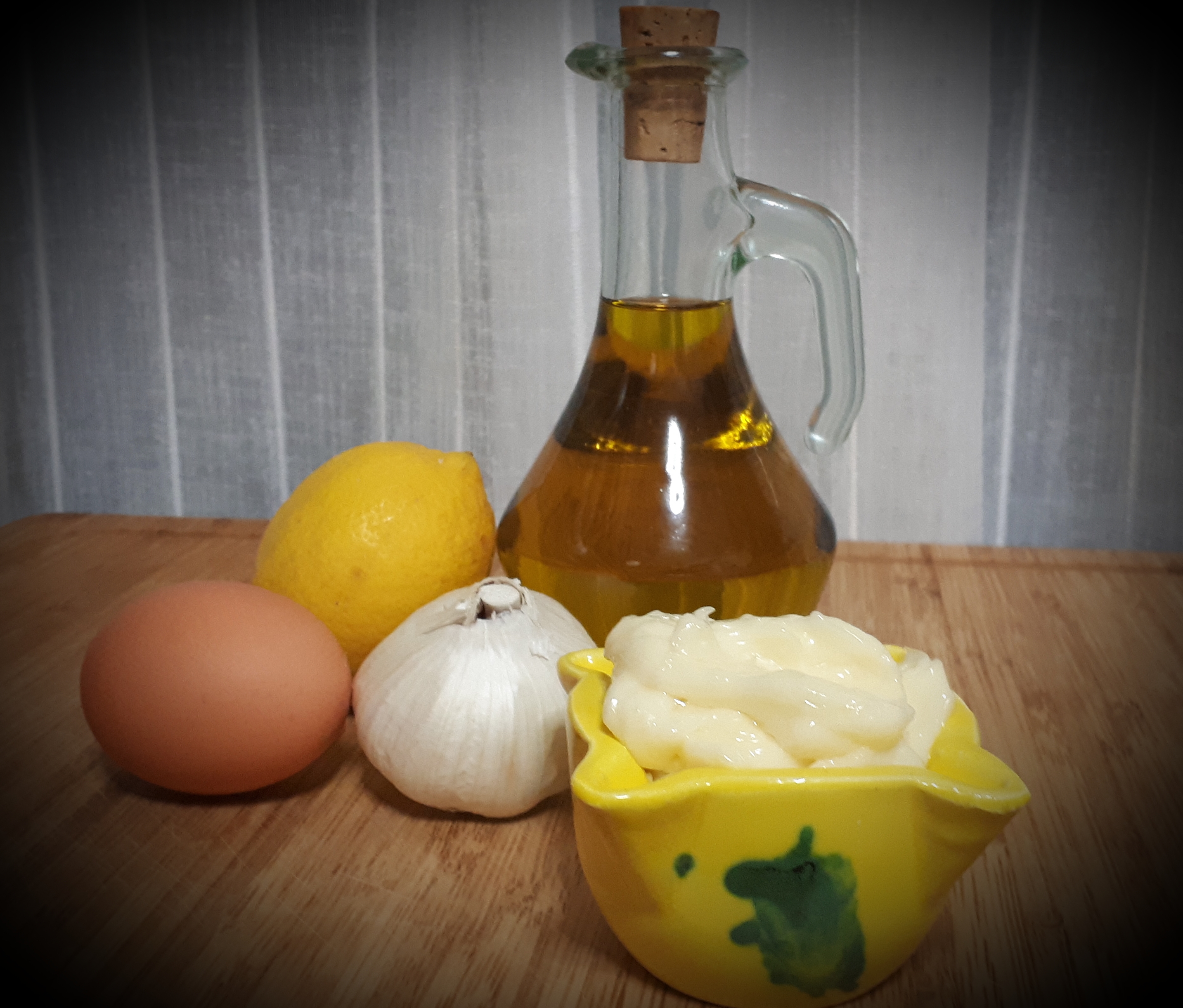- Añadimos al vaso los dientes de ajo, el huevo, el aceite de oliva suave, la sal , el chorrito de limón y colocamos el cestillo en el vaso. Programamos 1 minuto/ 80º/ velocidad 5