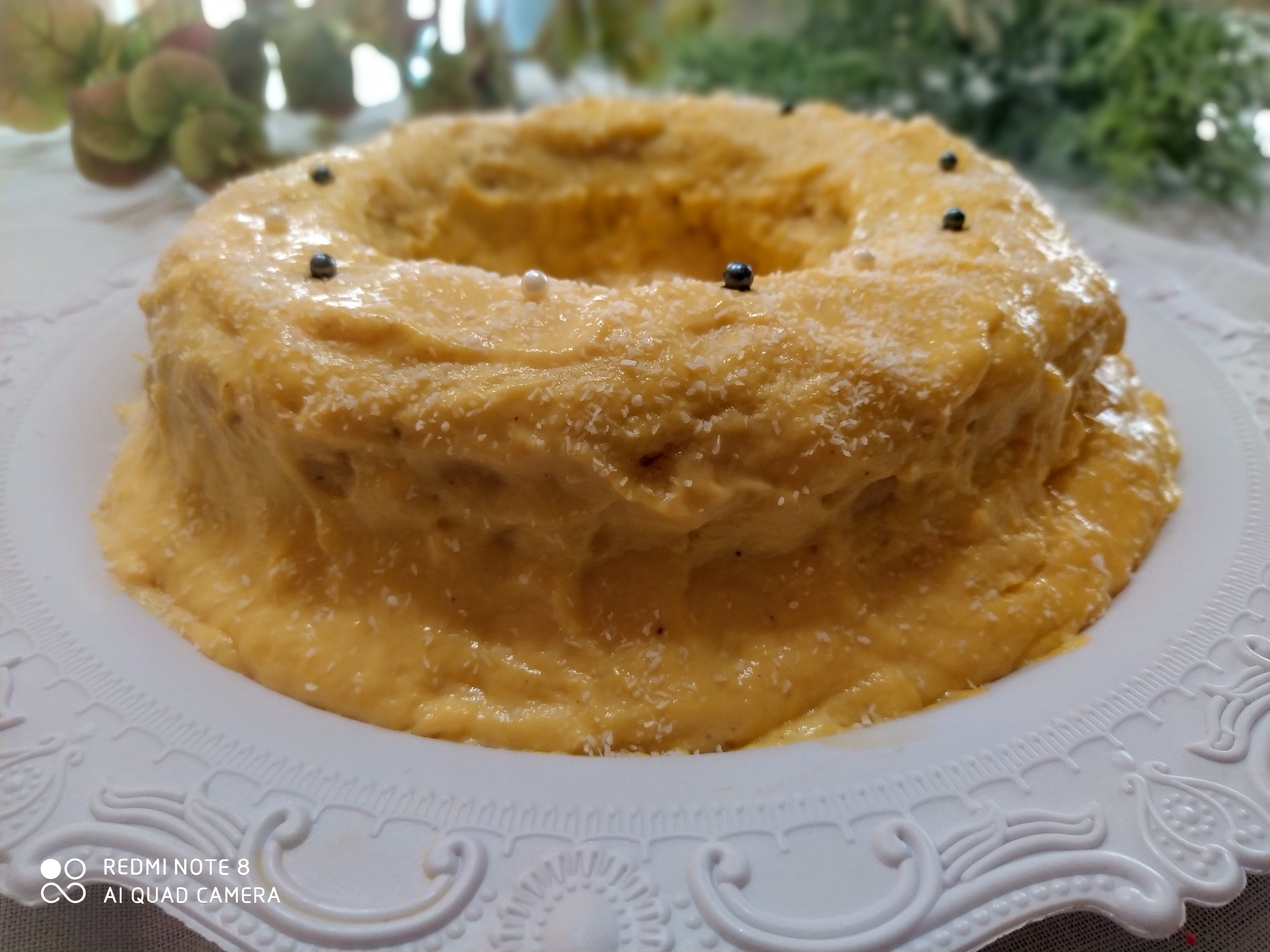 Desmolde el merengue deja que enfríe ,añade la natilla dentro del agujero y un poco por encima antes que se enfríe , porque te ara grumos .Decora a tu gusto
